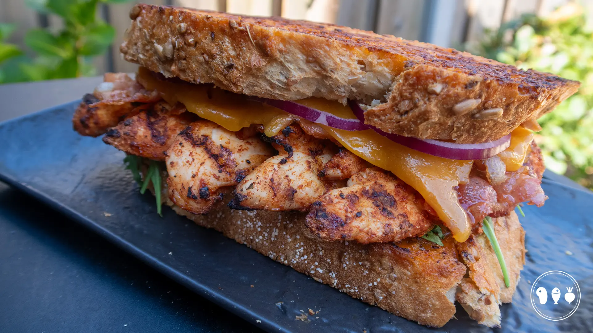 Wat dit broodje lekker maakt is de combinatie van de ingrediënten. Deze maken net als bij bijvoorbeeld onze favoriete burger er een smaakvol geheel van. Dit broodje gegrilde kip heeft eigenlijk best veel raakvlakken met een burger. Gebakken spek, verse cheddar, rucola...maar wat hem afmaakt is de pittige sriracha mayonaise waarmee we de plakken brood hebben ingesmeerd. Door deze plakken dan ook nog te grillen op een gloepend hete plancha, krijg je een krokant maar ook romig broodje.