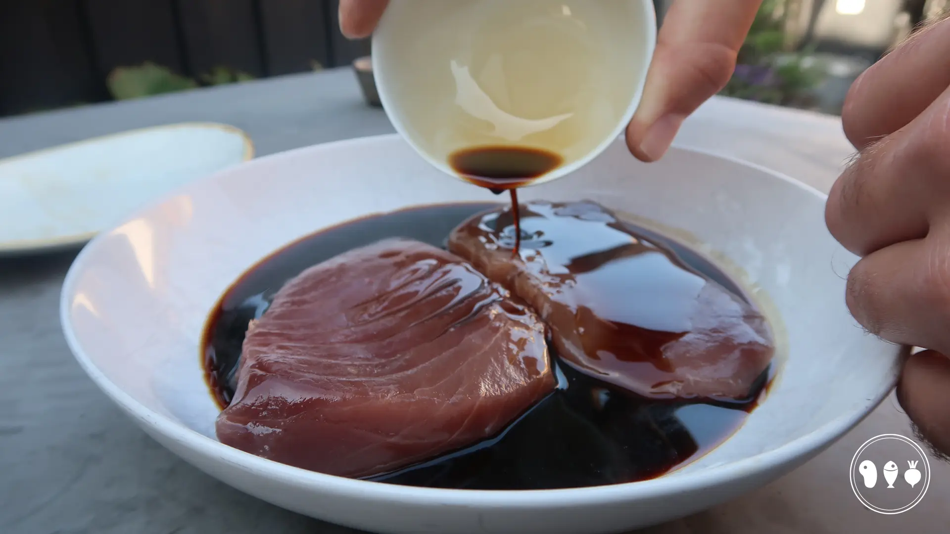 Let op! Ruik voordat je de tonijnsteak marineert even aan het vlees dan weet je gauw genoeg of deze vers is. Er wordt vaak gesjoemeld met bijvoorbeeld bietensap om de vis weer een mooie rode kleur te geven. Wij hebben liever een iets verkleurde steak met een verse geur. Dan weet je zeker dat het enkel tonijn betreft.