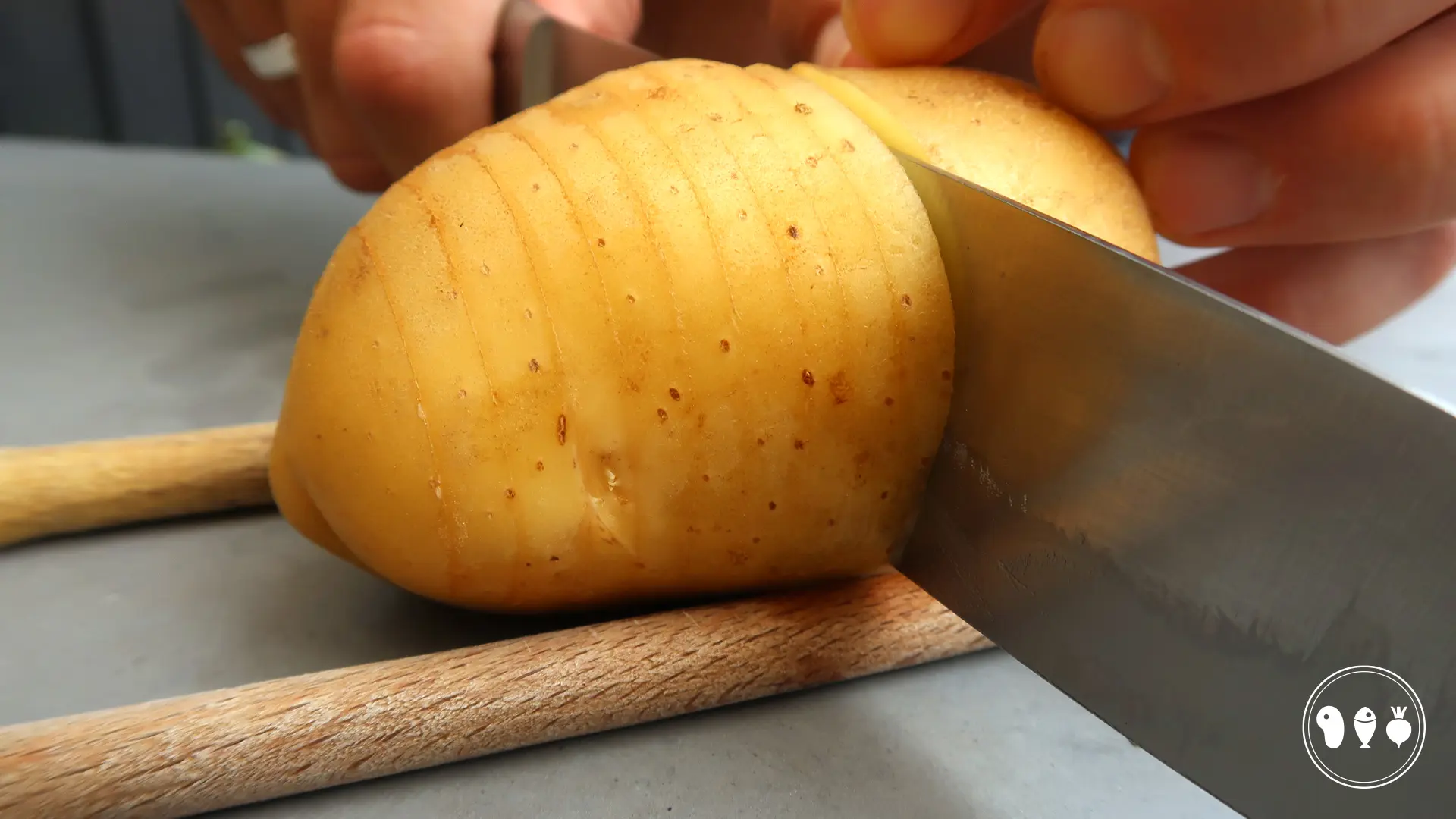 Je ziet dit gerecht vaak voorbij komen in BBQ restaurants. En terecht, want het ziet er super leuk uit en smaakt ook nog eens werelds. Wat wil je dan nog meer?! Voordeel van deze manier van bereiden is dat door het insnijden van de aardappel 1. de smaak ook binnenin komt en 2. dat de bereidingstijd enorm wordt verkort. Top dus!
