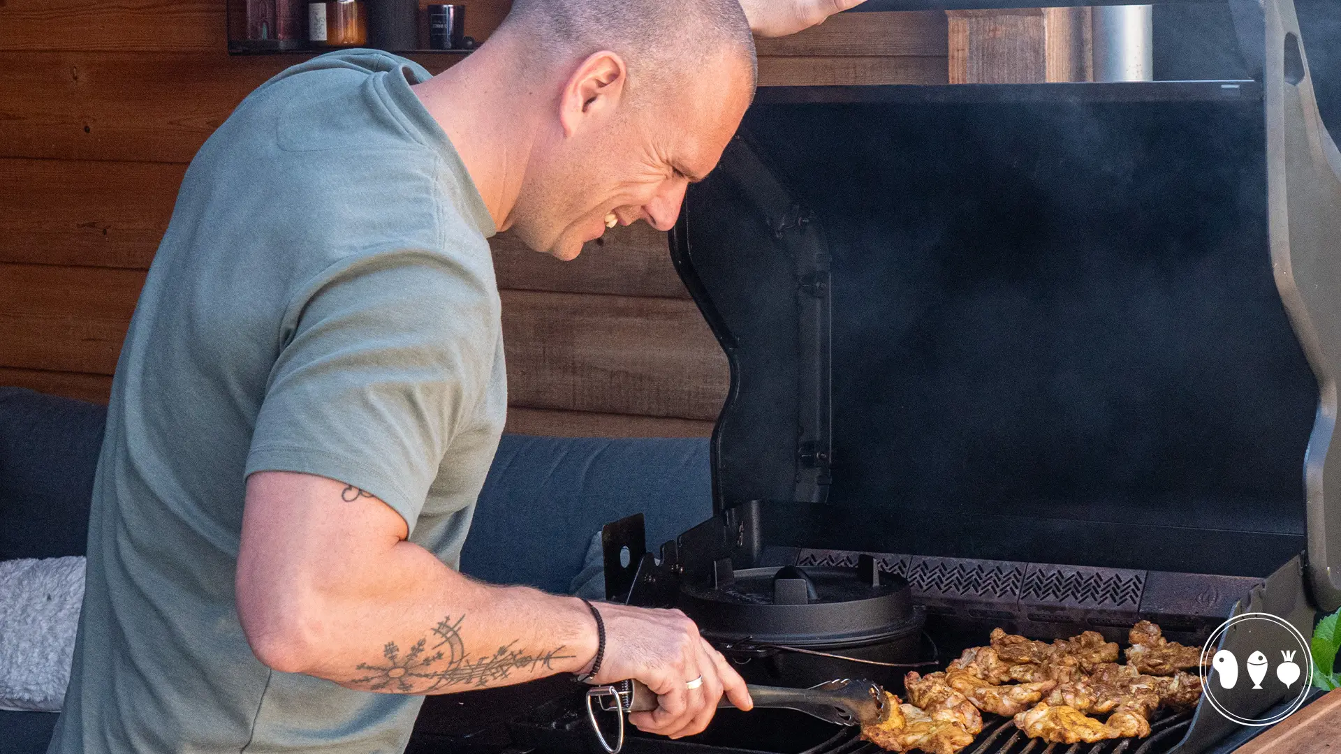 Wij roken de kippendij op een gasbarbecue, de Phantom Rogue van Napoleon. Om hierop te roken gebruiken wij een smokersbox. Deze plaats je op een warmteverdeler waardoor het rookhout gaat smeulen. Belangrijk is wel, dat je de brander eronder uitzet of heel laag draait. Wanneer de smokersbox te heet wordt, verbrand het hout te snel. Het is dus even spelenderwijs aanvoelen hoe je het beste kan roken.