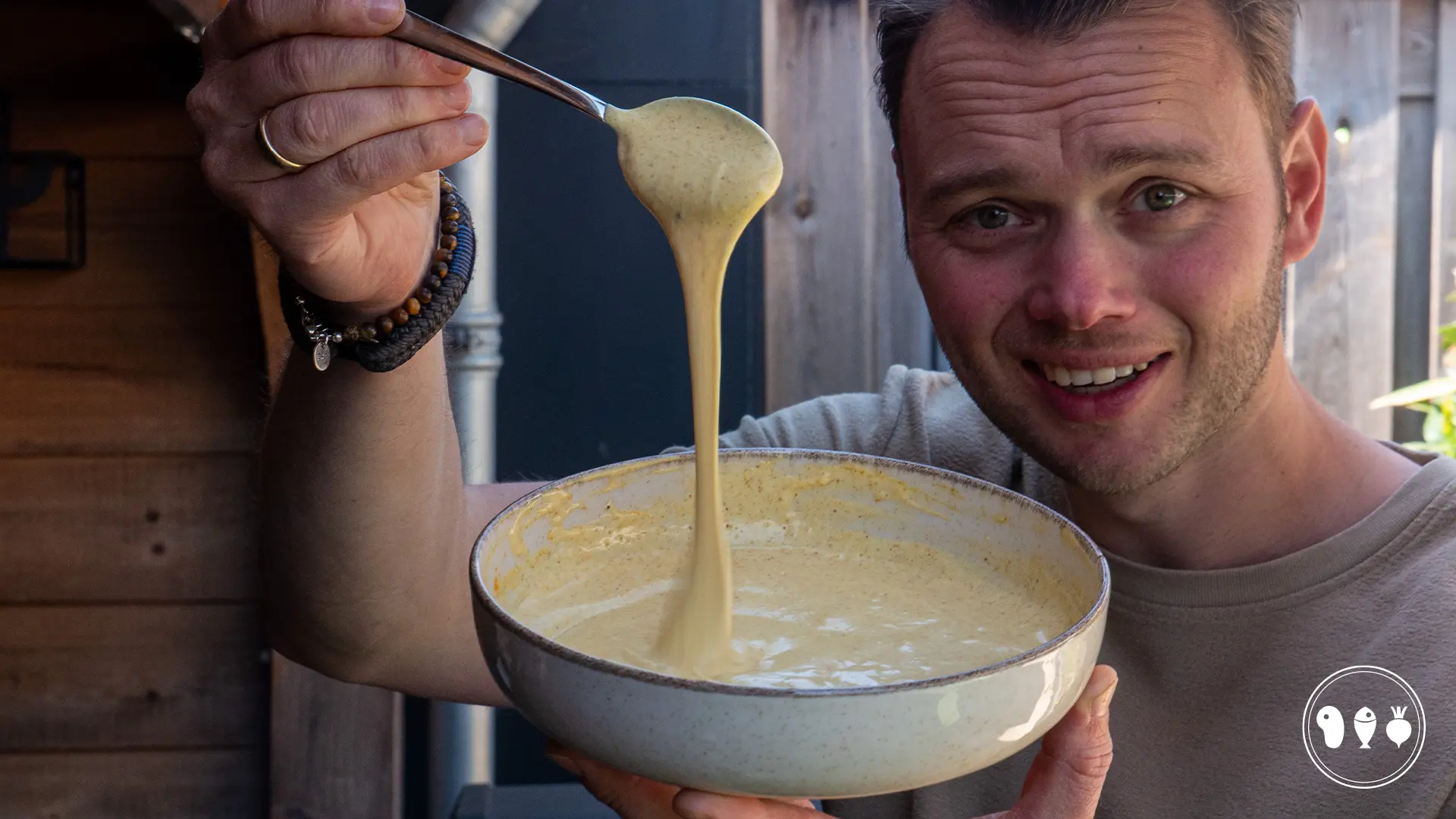 Voor dit kipkerrie recept gaan we dus verschillende technieken gebruiken; roken en stoven. De kipdijen roken we eerst indirect op lage temperatuur, zodat ze langzaam garen en een mooie rooksmaak krijgen. Daarna gaan ze in de Dutch Oven met een scheutje kippenbouillon, om in een gesloten omgeving verder te stoven tot ze boterzacht zijn. Zodra de kip makkelijk uit elkaar valt, mengen we de pulled chicken met een zelfgemaakte saus op basis van mayonaise en kerrie. Deze bereidingswijze geeft je maximale smaak, zonder ingewikkelde stappen of marinades. Het resultaat? Een onweerstaanbare kipkerrie sandwich met BBQ-karakter.