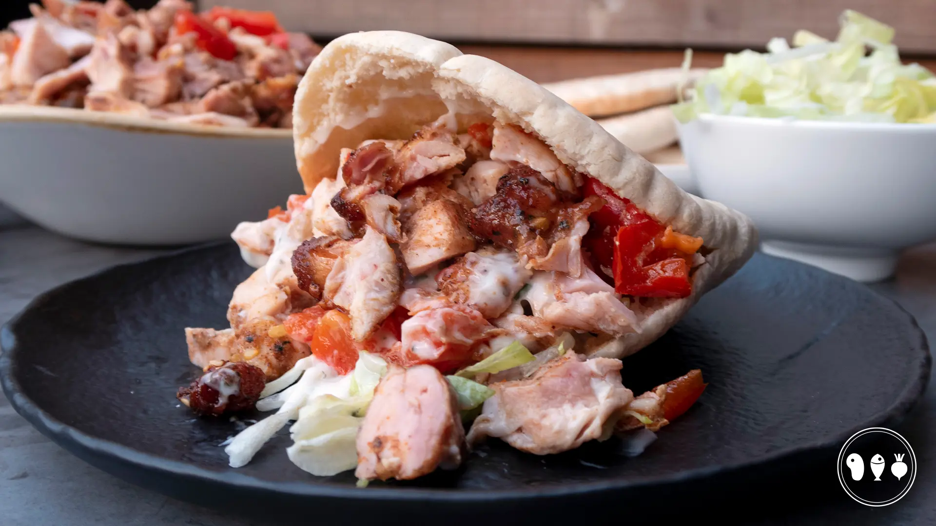 Je hebt dus voldoende tijd om de knoflooksaus te maken en de pita broodjes klaar te maken.