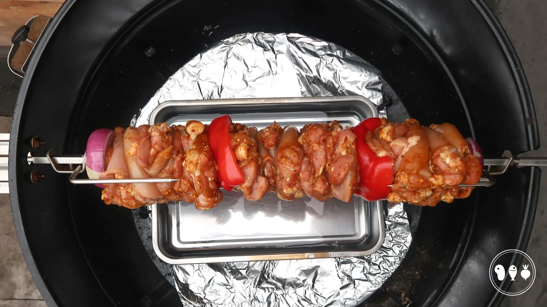 Ik heb de kipshoarma gemaakt op de Master Touch Premium. De warmteverdeler/diffuser heb ik ingepakt in folie omdat er veel sappen van het vlees zullen druipen. Zet daarom hierop een lekbak met water zodat het vet niet gaat verbranden. Heb je geen warmteverdeler/diffuser gebruik dan de kolenbakjes en zet ze aan beide kanten van de BBQ, je shoarma zal dan wel sneller klaar zijn. Ook zonder rotisserie/spit kan je deze kipshoarma gewoon maken. Je kan het volledige recept gewoon aanhouden, alleen leg je de kippendij nu indirect op het rooster.
