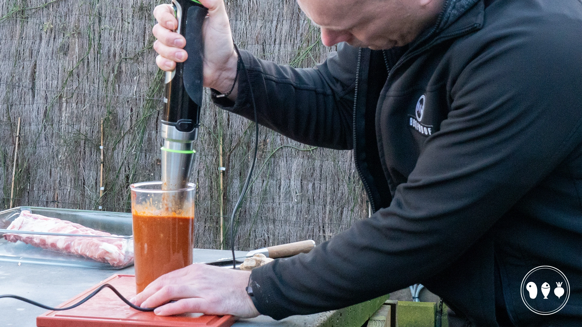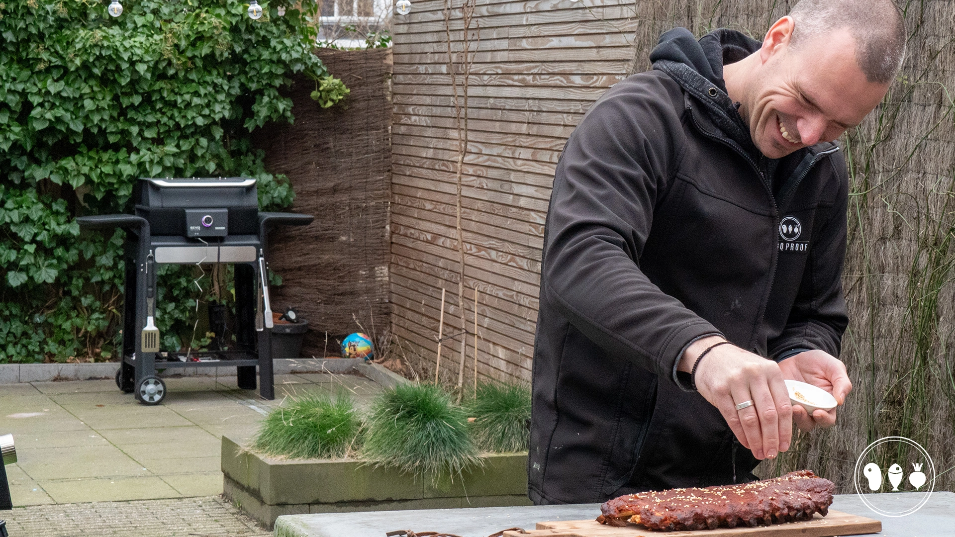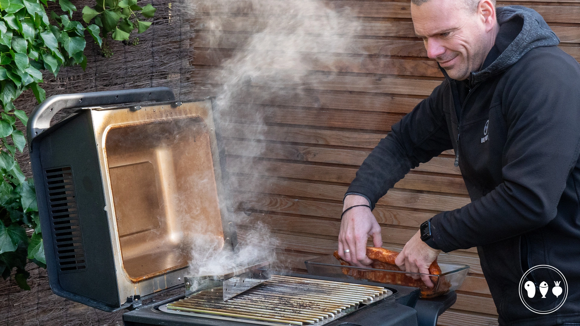 Wij hebben deze Koreaanse sparerib gemaakt op de Sevo Smart Control, een elektrische BBQ dus. Ja je leest het goed, een elektrische BBQ. Maar je kan hier dus gewoon op roken en indirect grillen. Dus spareribs is ook geen probleem op de Sevo. Wel zullen de handelingen net even anders zijn dan op een houtskool of gas BBQ. Wij hebben de ribs gerookt met een rookbox, normaal gesproken zet je deze in de BBQ en gaat het vanzelf smeulen. Omdat de Sevo een compacte BBQ is, is dat niet mogelijk. Omdat je de sparerib indirect wilt garen, is er te weinig contact tussen de rookbox en de warmte elementen. Daarom hebben wij de rookbox handmatig in de 'fik gestoken' en de BBQ dicht gedaan. Dit hebben we een paar keer herhaald, zodat de sparerib een lekkere rooksmaak heeft.