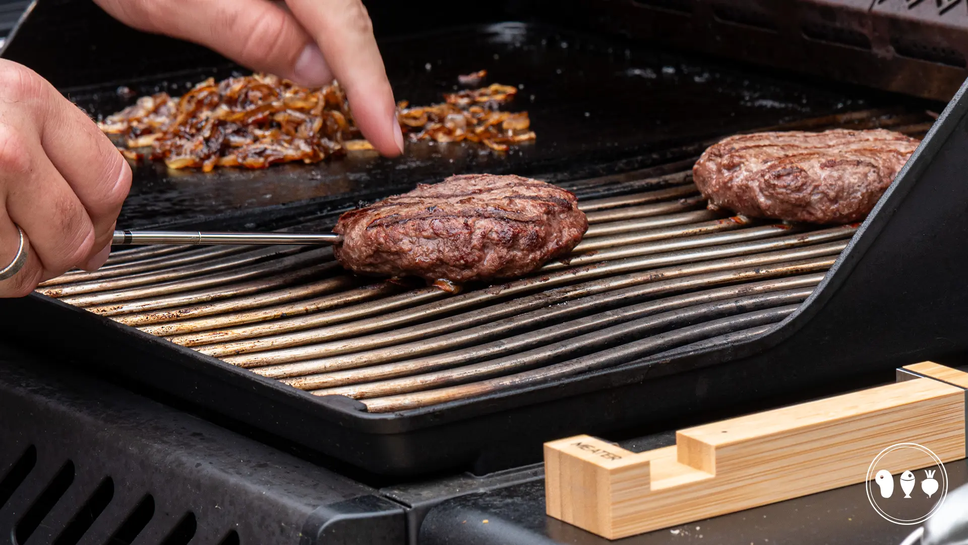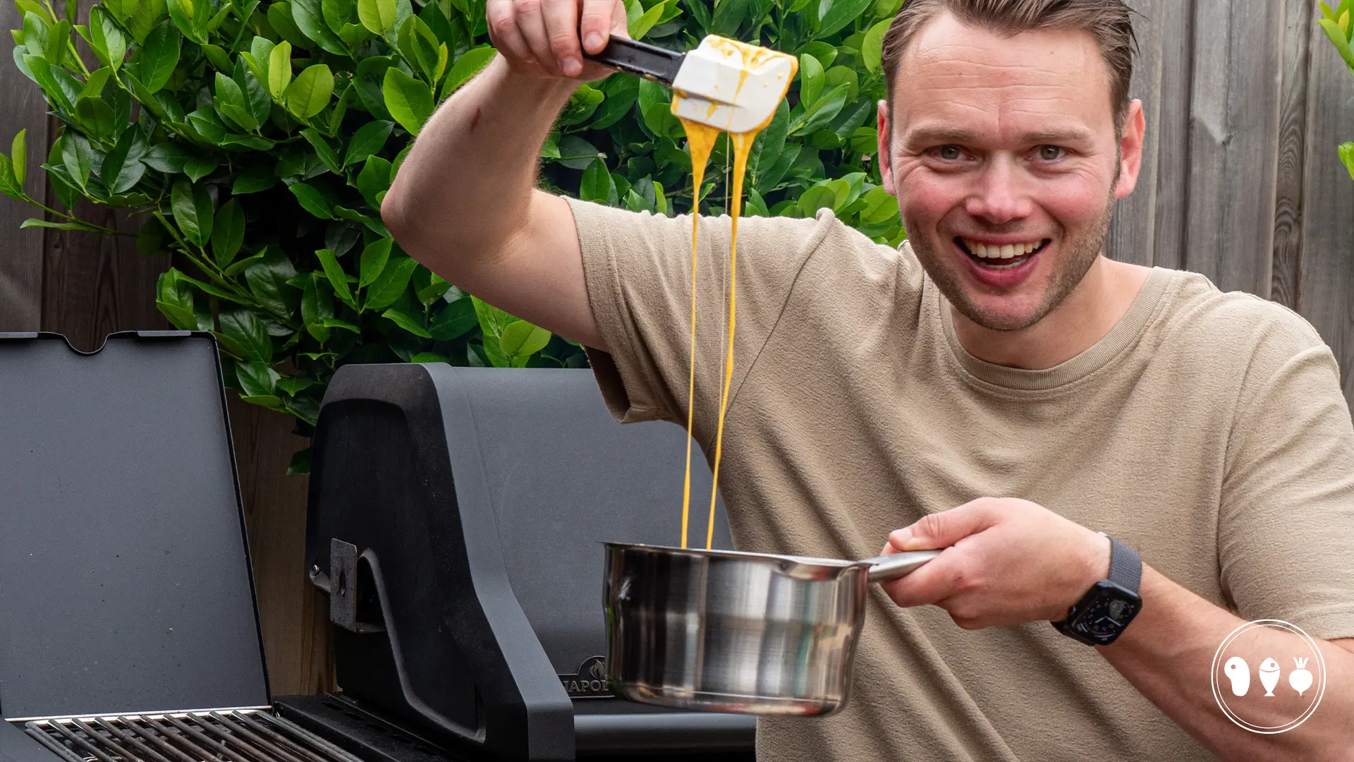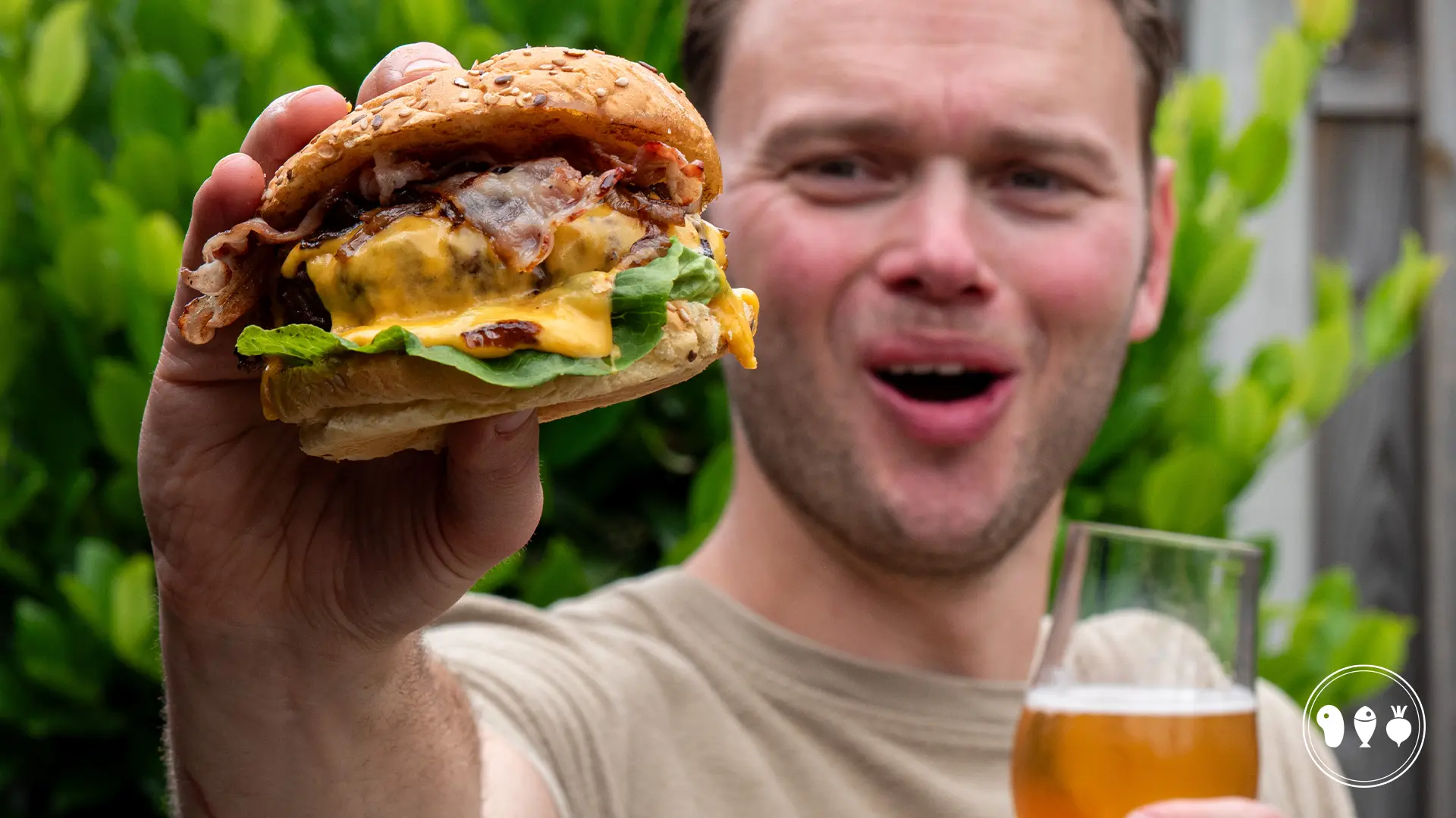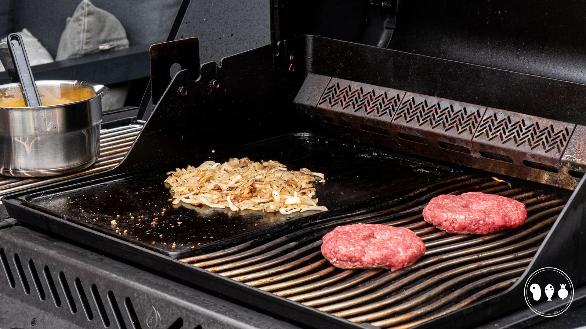 De kroegburger is geïnspireerd op de klassieke pub style burger en combineert rijke smaken met eenvoud. Het begint met rundergehakt dat 1,5 keer is gedraaid: stevig genoeg voor een sappige bite, maar fijn genoeg om gelijkmatig te garen. Daarbovenop komen zoetige gekaramelliseerde uien, frisse little gem sla en natuurlijk krokant gebakken bacon. En de ster van de show? De romige cheddar-biersaus die alles met elkaar verbindt. Elke hap is comfort food pur sang. Wij maakten deze kroegburger op de Napoleon Phantom Rogue. Dankzij de halve plancha konden we de uienrelish en de burgers tegelijk bereiden: aan de ene kant van de BBQ de plancha voor de gekaramelliseerde uien, aan de andere kant het rooster voor het grillen van de burgers. Zo krijg je ultieme controle over de bereiding én serveer je alles perfect op hetzelfde moment.