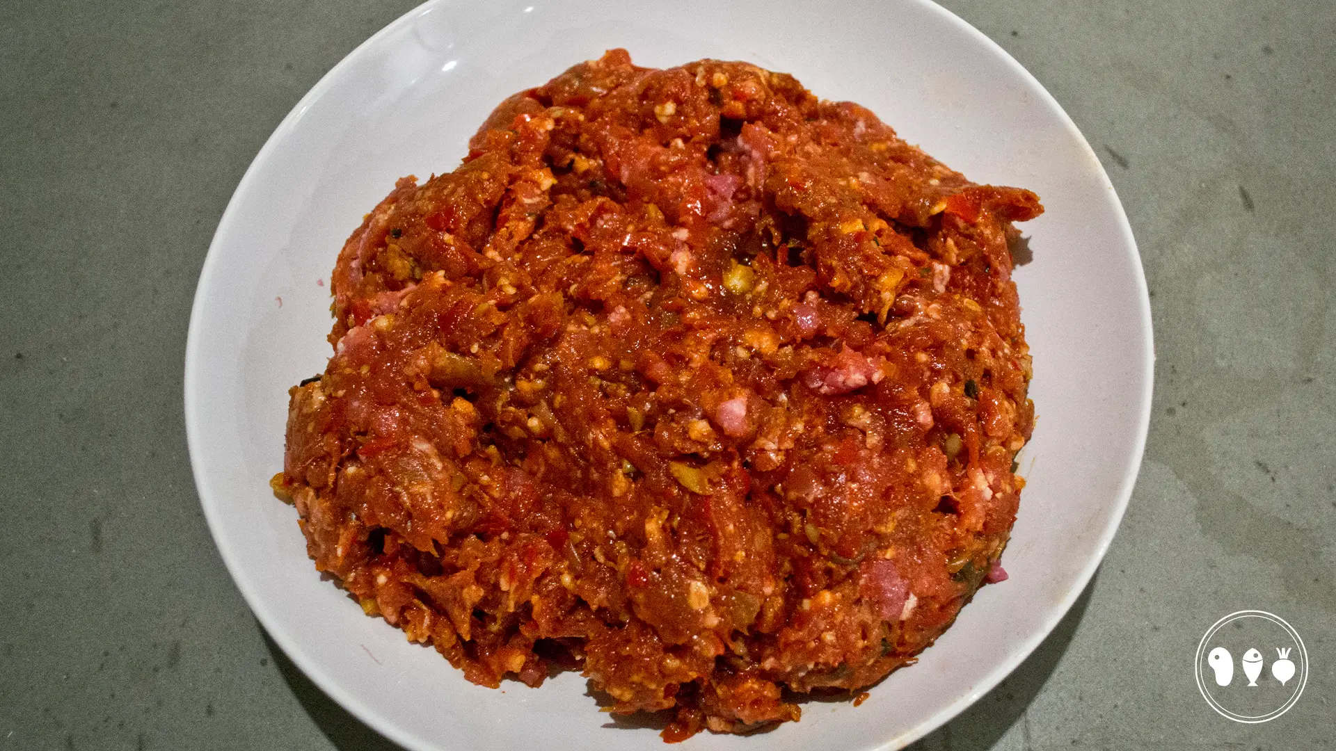 Dankzij het lamsbroodje bij de bakker weet ik nu wat harissa is. Ik had er namelijk nog nooit van gehoord. Maar harissa is een soort sambal die veel in Noord-Afrikaanse landen gegeten wordt. Je kan harissa ook gewoon in de supermarkt kopen. Alleen is de structuur in deze potjes erg fijn. Voor dit gerecht is het lekkerder als je een grove structuur hebt. Overigens is een saus zelf vers maken altijd lekkerder! Dankzij wat proeven, testen en wat tips van de Bakkerszonen hebben we de harissa gemaakt op basis van paprika. Normaal gesproken wordt de harissa vooral op basis van pepers gemaakt, alleen willen we niet dat de pittigheid gaat overheersen.