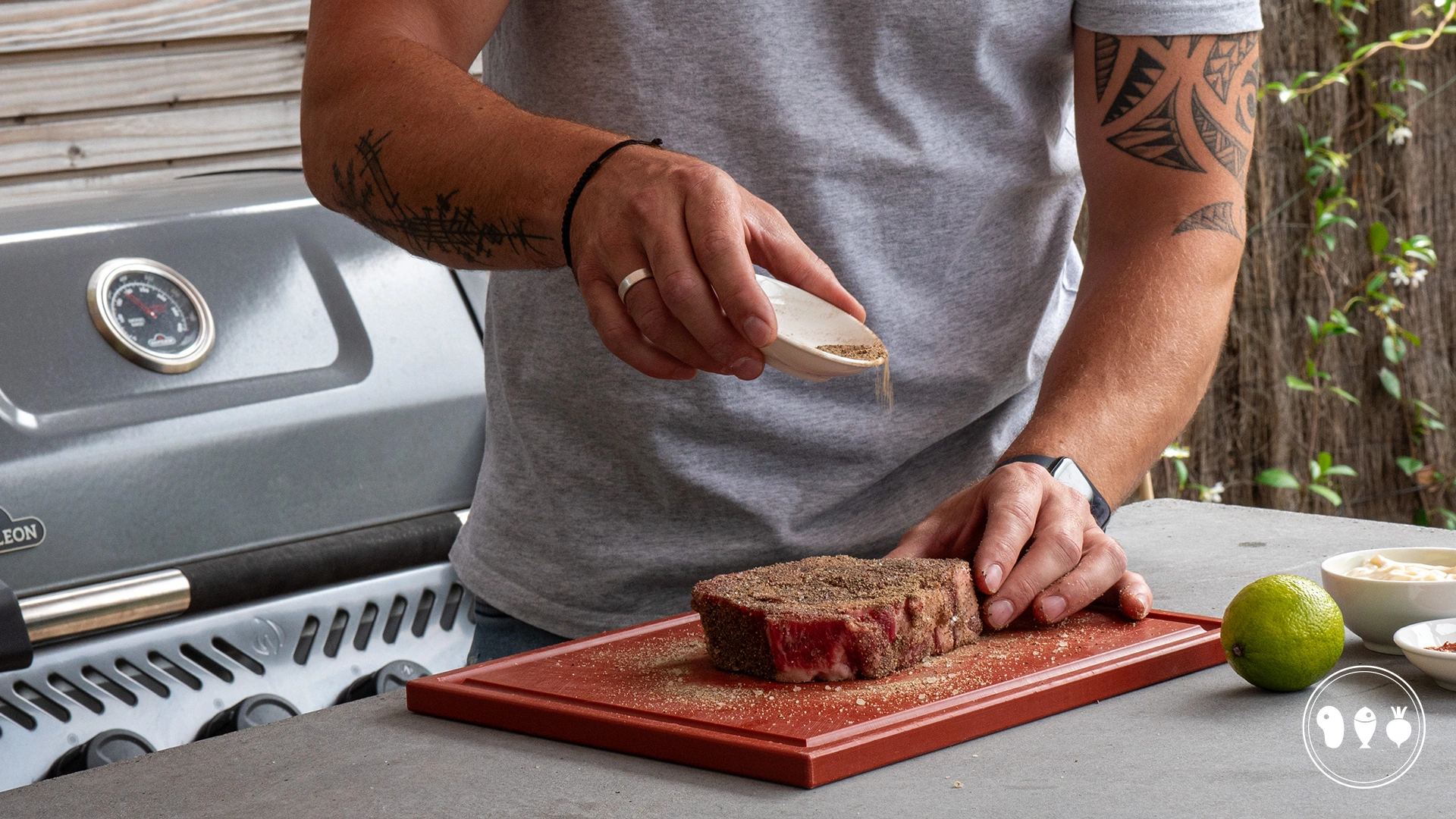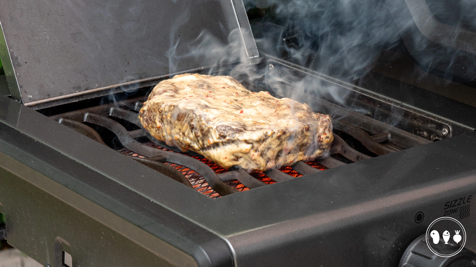 Ken jij de mayonaise steak (of mayo seared steak)? Als er een gerecht in ons online algoritme vast zit (thanks Roel (Pitmaster X)) is het deze wel. Dagelijks zien we vele filmpjes van grote steaks die worden ingesmeerd met een laag mayonaise en dan op hoge temperatuur worden gegrild. Wat er dan gebeurt lijkt op een soort magie: er ontstaat een prachtige goudgele korst op de steaks. Zo eentje waarbij het water direct in je mond loopt. En als het zo vaak wordt getoond moet het wel waar zijn toch? Dat gaan we testen in dit recept.