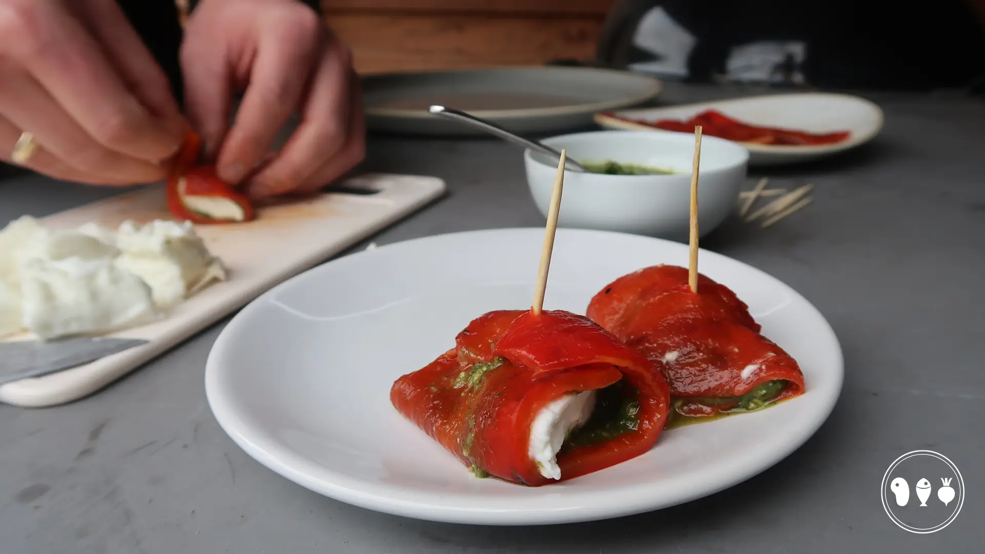 Voor dit recept kan je gegrilde paprika's uit een potje gebruiken maar dat hebben wij niet gedaan. Wij hebben de paprika's zelf gegrild, dit is namelijk veel leuker om te doen. En het is super simpel, je laat de paprika's namelijk helemaal zwart worden en haalt dan het velletje eraf. In dit artikel lees je hoe je dit kan doen. Ook met de pesto kan je variëren. Wij hebben zelf de pesto gemaakt, deze zullen wij later nog delen op ons blog.