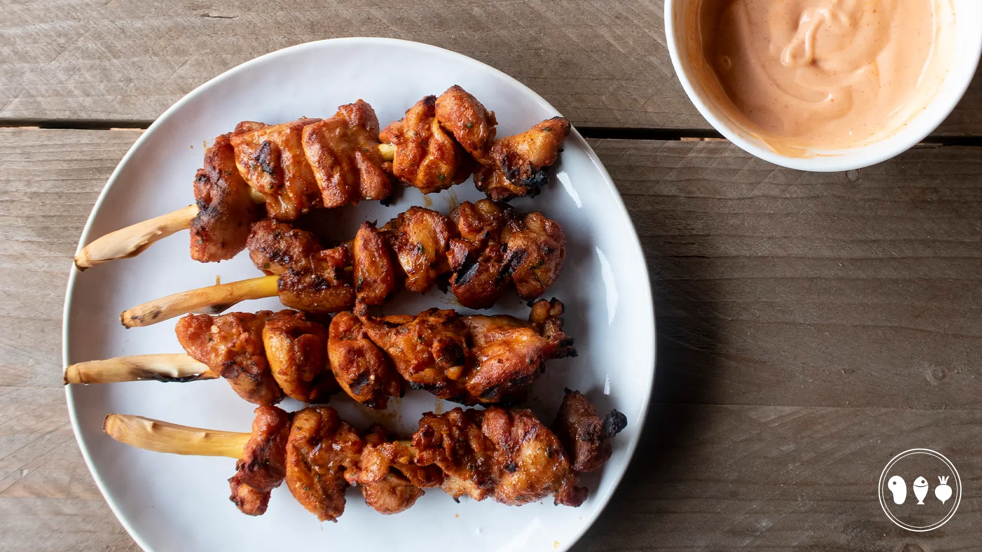 Wat ik zelf leuk vind is dat je maar 3 ingrediënten nodig hebt voor dit recept! Je bent dus ook snel klaar met je boodschappen! Lucky you! b. Bij spiesjes Nheb ik een pittige mayonaise geserveerd. Hiervoor heb ik enkel wat mayonaise en sriracha chilisaus gemengd. Simpel maar smaakvol!