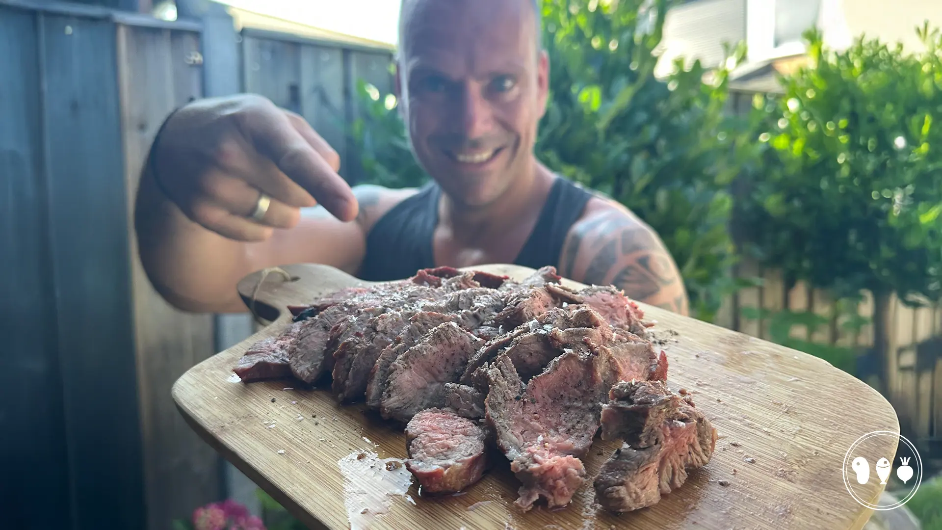 Een paar weken geleden was ik op vakantie op Texel met mijn gezin. In Den Burg hadden we op een gegeven moment zin in een broodje. Wij liepen toen bij Slagerij Dros naar binnen om wat te halen. Binnen raakte ik aan de praat met de slager (Simon) en al snel kwam het onderwerp BBQ ter sprake (wat apart :) ). Hij vertelde dat hij de 'Ambassadeur van de spinnenkop' was. Voordat ik de vraag had gesteld wat dat precies is had ik al een mooi stuk vlees in mijn handen. Ik moest en zou dit proberen en laten weten wat ik er van vind. Dat laat ik mij natuurlijk geen 2 keer zeggen. Dus voila, hierbij een recept met een voor mij volledig nieuw stukje vlees! En ik kan je vertellen; het is echt heel smakelijk. Het doet mij denken aan een combinatie van de structuur van longhaas en de smaak van diamanthaas. Subtiel en erg lekker!