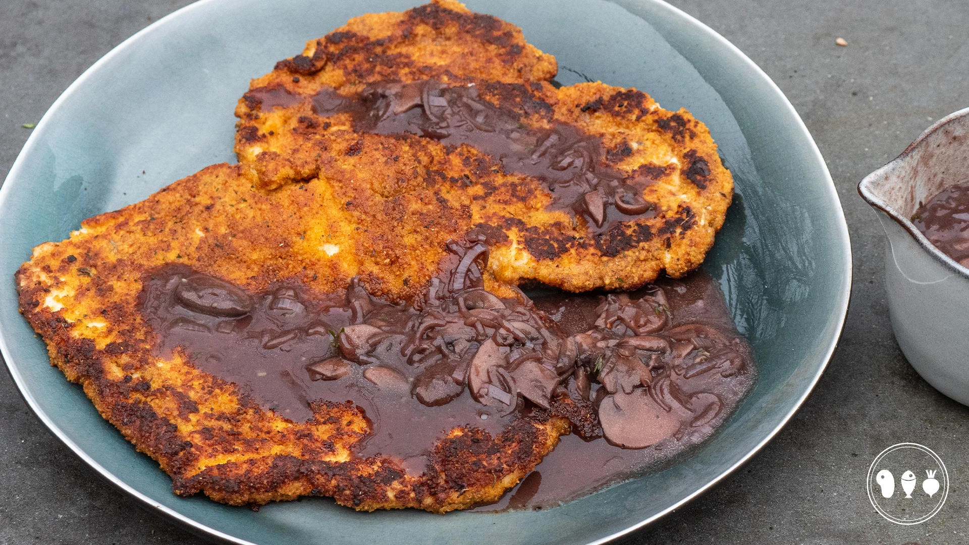 De Jagersaus is een klassieke, hartige saus die perfect samengaat met verschillende gerechten. Dat maakt het echt een universele saus. Deze rijke saus vindt zijn oorsprong in de Duitse keuken en staat bekend om zijn volle smaak en robuuste ingrediënten. Onze versie van jagersaus hebben wij bereid met een basis van ingekookte rode wijn, champignons, een smeuïge roux en smaakvolle bouillon. Dit zorgt voor een diepe, umami-rijke smaak met een subtiele wijnachtige ondertoon. De saus brengt niet alleen onze waanzinnige schnitzel naar een hoger niveau, maar is ook heerlijk bij gegrild vlees of aardappelen. Kortom; een echte klassieker met een eigen twist!